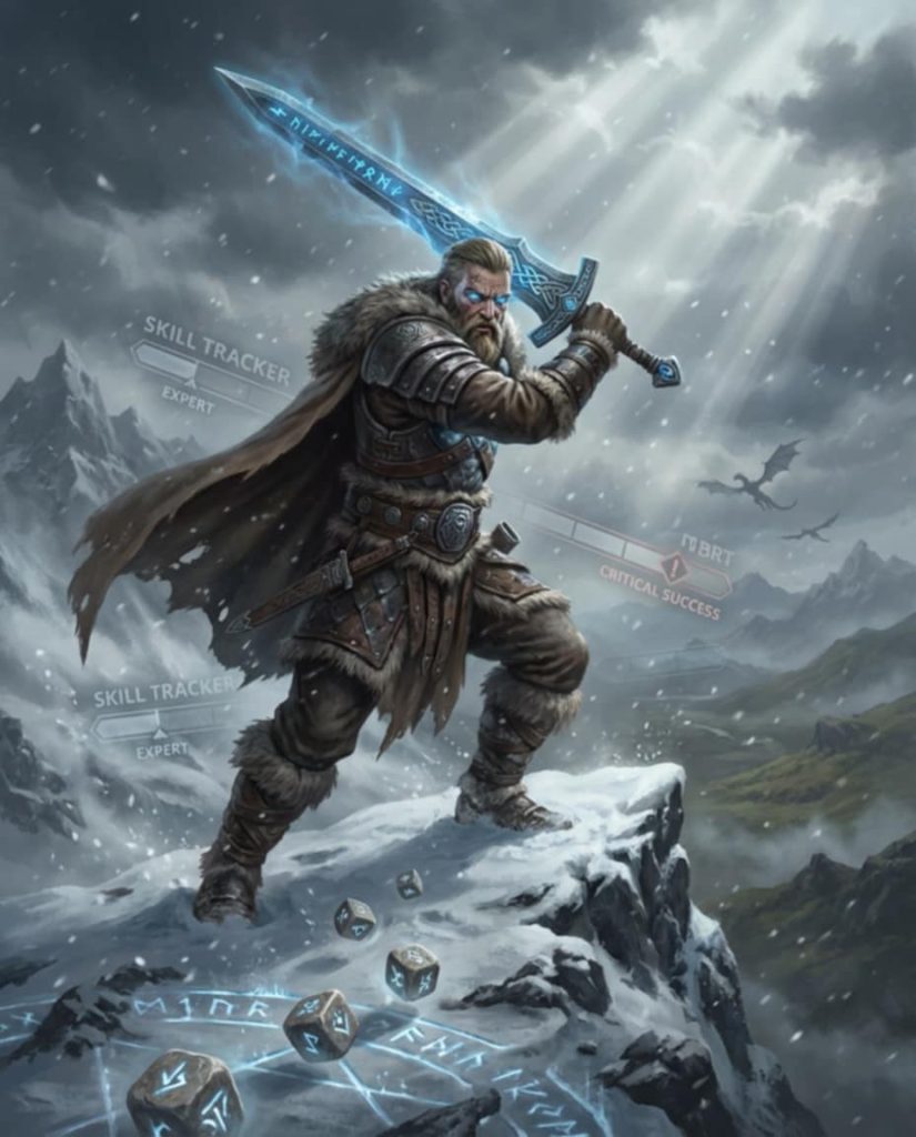 Discover Myth & Merit—the tabletop RPG that captures the true essence of The Elder Scrolls V: Skyrim like never before, where your character’s growth emerges organically from every action you take in a vast, open-world fantasy adventure. Ditch rigid classes, fixed XP rewards, and pre-set builds: here, progression is driven by a dynamic roll-based experience advancement system (REAS) using simple d100 percentile dice. Every swing of your sword, cast of a spell, sneaky lockpick, or persuasive negotiation rolls under your skill score for success—and even failures teach you something, granting progression points. Nail a standard success? Earn one point. Achieve an expert success (half your skill or better)? Score two points and double your combat damage. Land a critical success (1/5th or better)? Claim three points and multiply damage by five. As you use skills in your chosen style—whether stealthy archery, brutal two-handed combat, illusion magic, or blacksmithing—fill trackers that level up abilities, mark character level progress, and let you boost Health, Stamina, or Magicka while shaping a hero truly defined by your playstyle. No two characters evolve the same way; your legend is forged through effort, risk, and the thrill of discovery in a living, breathing Tamriel-inspired world of dragons, ancient ruins, and endless possibility. If you’ve ever lost yourself in Skyrim’s freedom and wanted that feeling at the table, Myth & Merit delivers the immersive, skill-driven evolution you’ve been craving. Grab your dice, forge your path, and become the hero the bards will sing about. Your adventure begins now! #MythAndMerit #TabletopRPG